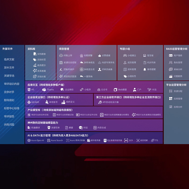医疗器械产品上市前,,要熟悉严格与繁复评审标准,,,整理分析监管机构指导文件中的海量信息。。。。企业急需一个智能化解决方案,,,,提升知识管理效率,,,提高评审通过率,,,以提升其市场竞争力。。